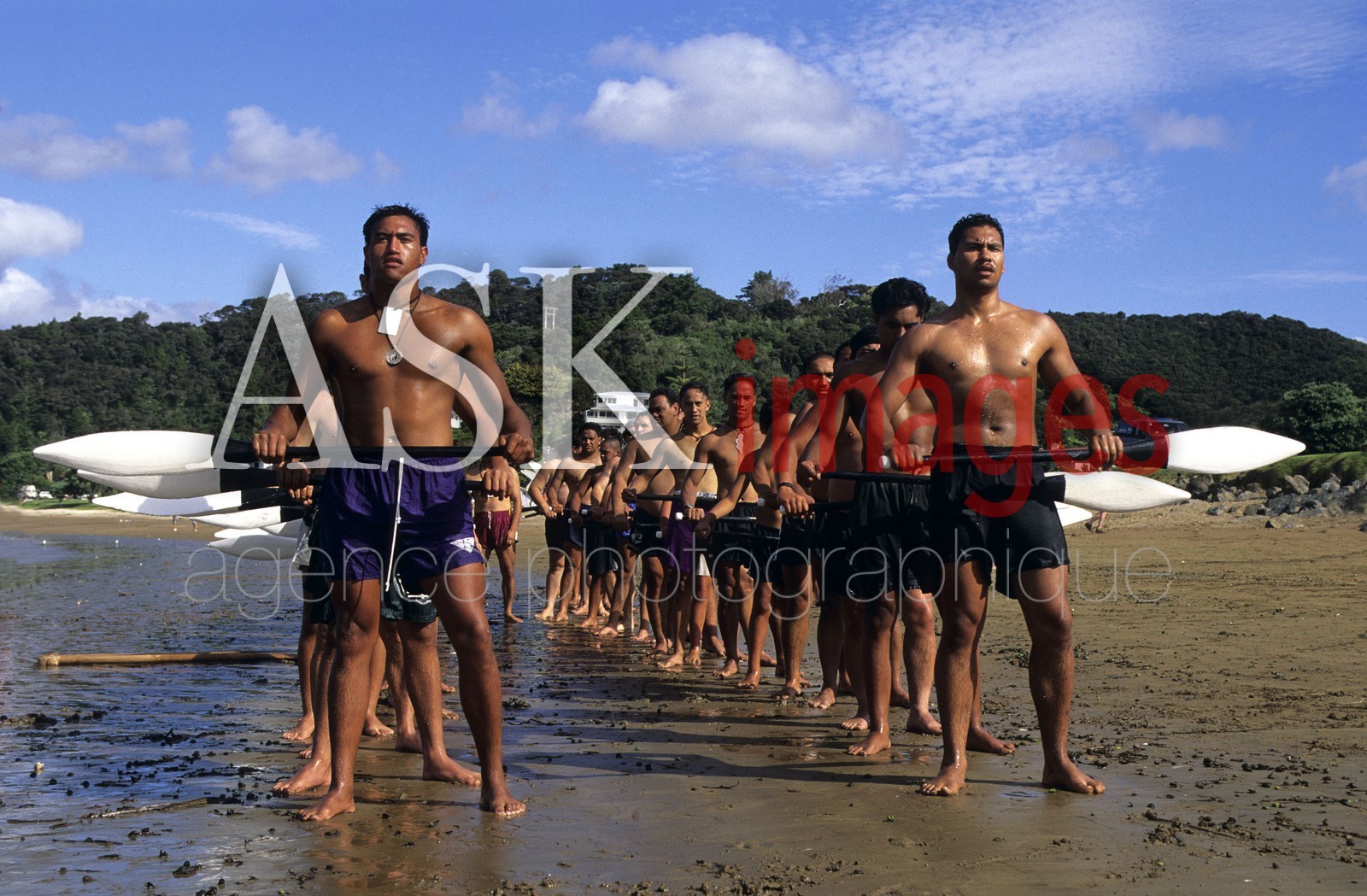 | Description | Maori men learning how to drive a waka (Maori pirogue). Waitangi Day, North Island, New Zealand. |