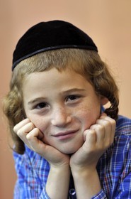 Religious family during kaparot in Mea Shearim, Jerusalem .