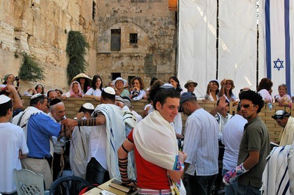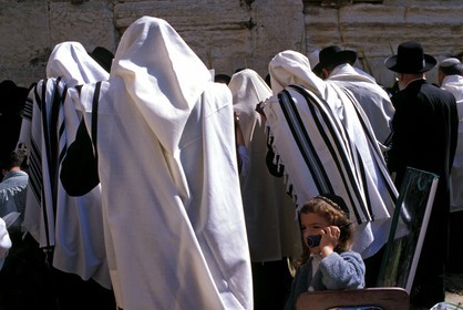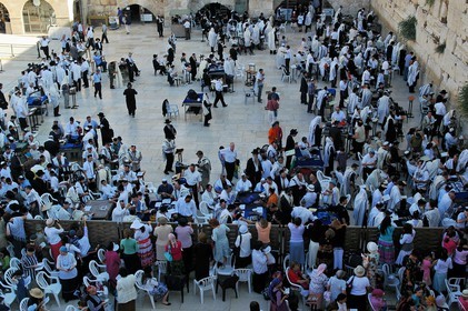Religious jews at the kotel during the prayer of kohanim, Jeruslalem