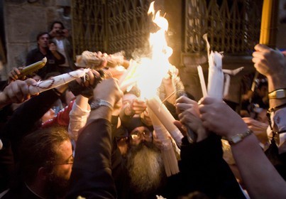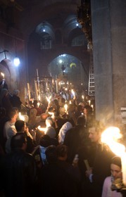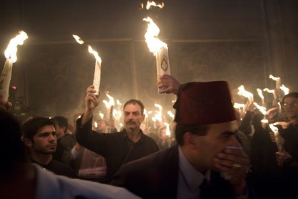 Israel, ceremonie de la Lumiere Sainte provenant du Tombeau de notre Seigneur Dieu et Sauveur Jesus Christ. *** Saturday Holy fire ceremony .The church of the Holy Sepulchre in Jerusalem.