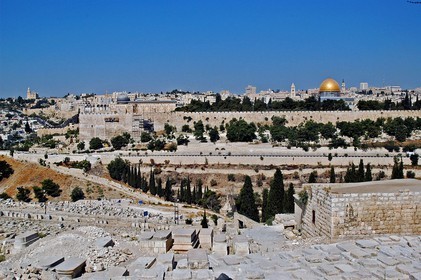 Jerusalem, cemetery on Mount of Olives and general view on old town.