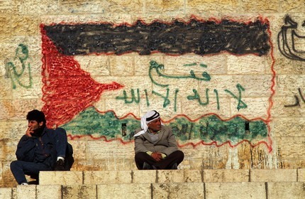 Part of the controversial Israeli security wall which separates the West Bank village of Abu Dis from east Jerusalem