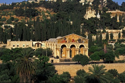 Agony basilica, Church of All Nations and Mount of Olives, Jerusalem, Israel.