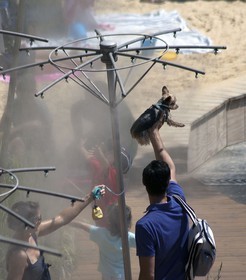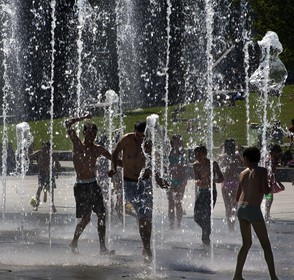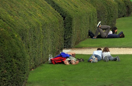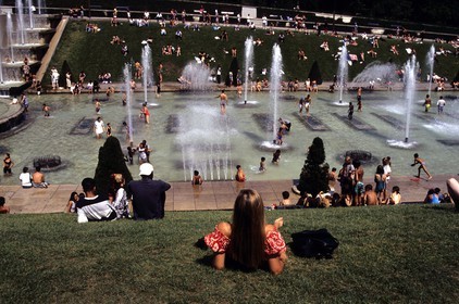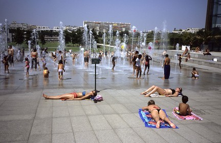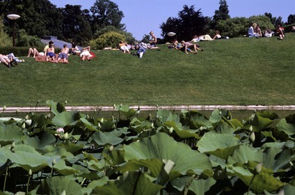 • Paris, parc des Buttes Chaumont, heat wave, people on grass
