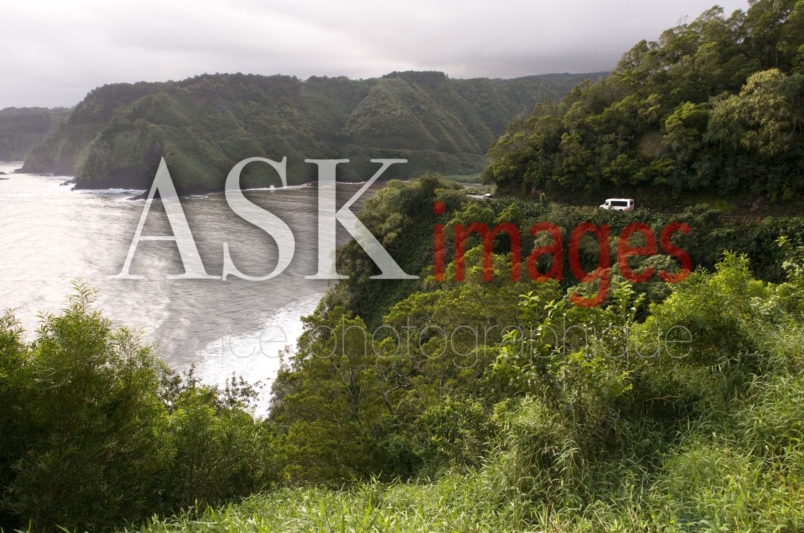 | Description | Cliffs on the road to Hana. Maui. Hawaii. Pacific Ocean overlook as seen from the Hana highway. The Hāna Highway is a 64.4-mile (103.6 km) long stretch of Hawaii Routes 36 and 360 which connects Kahului with the town of Hana in east Maui. |
