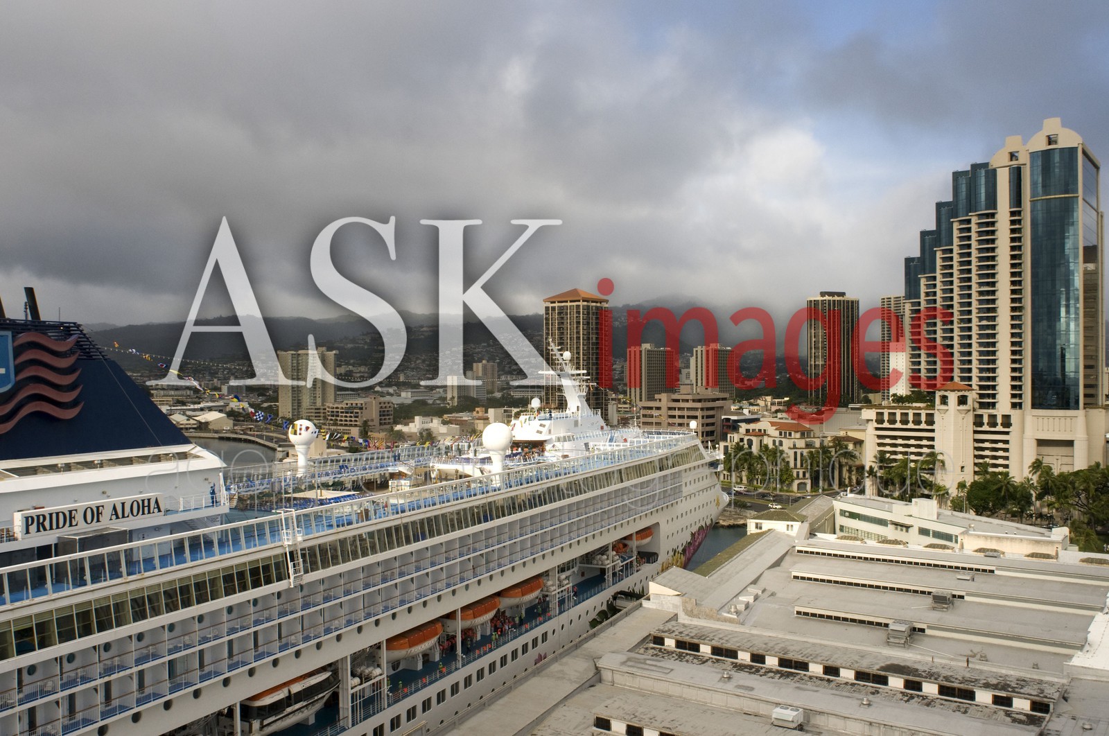 | Description | Cruise ship moored in the port of Honolulu. O'ahu. Hawaii. Pride of Aloha. Boat cruises around Hawaii give visitors the chance to tour more than the one or two islands they'd normally visit on a typical Hawaiian vacation. |